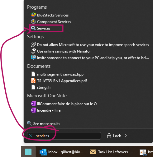 - Alternative access method for "Services" using Windows search: